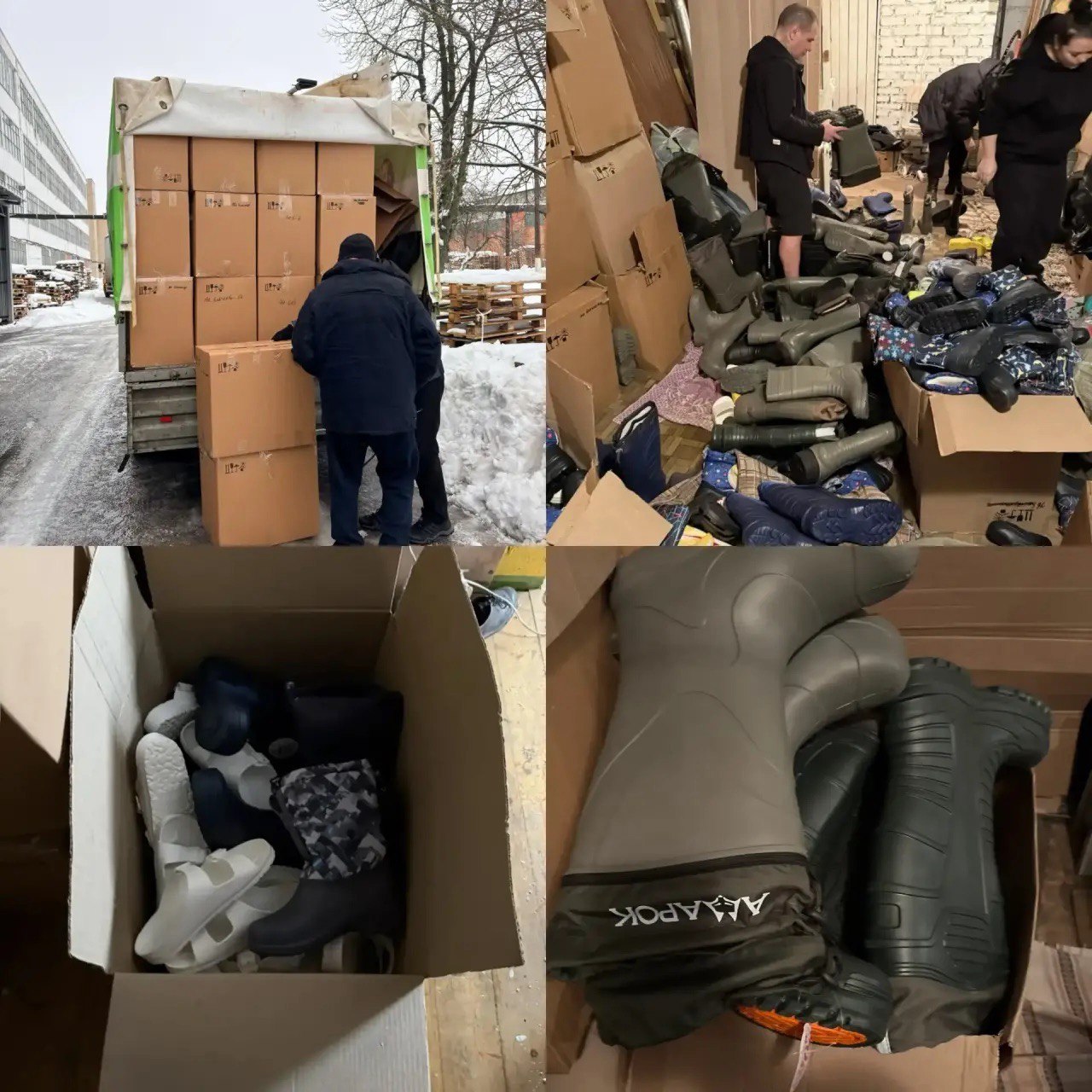 За партию — 8 паллет обуви для наших подопечных, взрослых и детских.