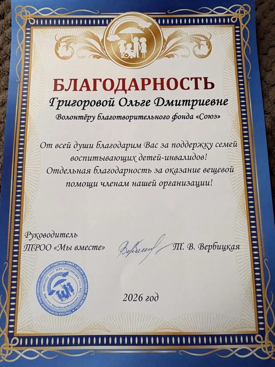 Нам вручили благодарственное письмо, очень приятно и неожиданно.